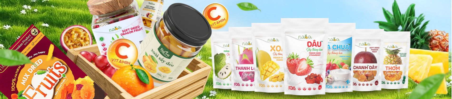 Trái cây sấy dẻo & thăng hoa NAVA – Tinh hoa từ những loại trái cây tươi ngon nhất, chế biến bằng công nghệ hiện đại giúp giữ trọn hương vị, màu sắc và dưỡng chất. Lựa chọn hoàn hảo cho ăn vặt lành mạnh, quà tặng sức khỏe và thưởng thức mỗi ngày.