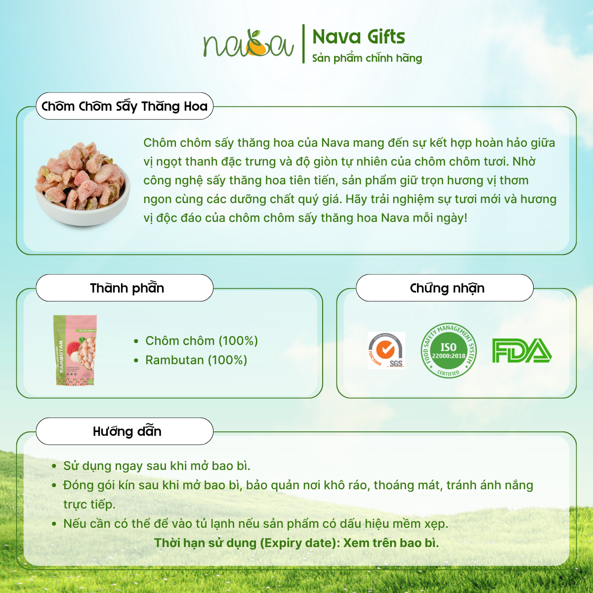 - Tên sản phẩm: Chôm chôm sấy thăng hoa NAVA
